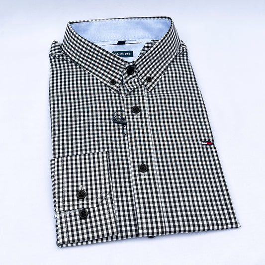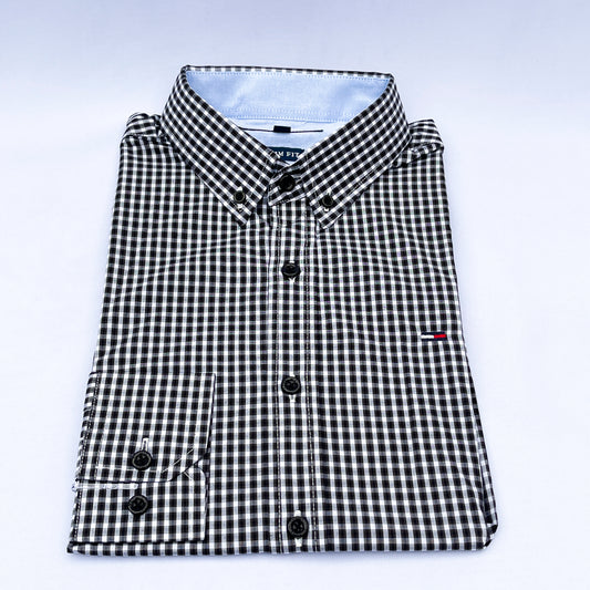 Men's Custom Slim Fit Oxford Check Long Sleeves -THL Black & White 223