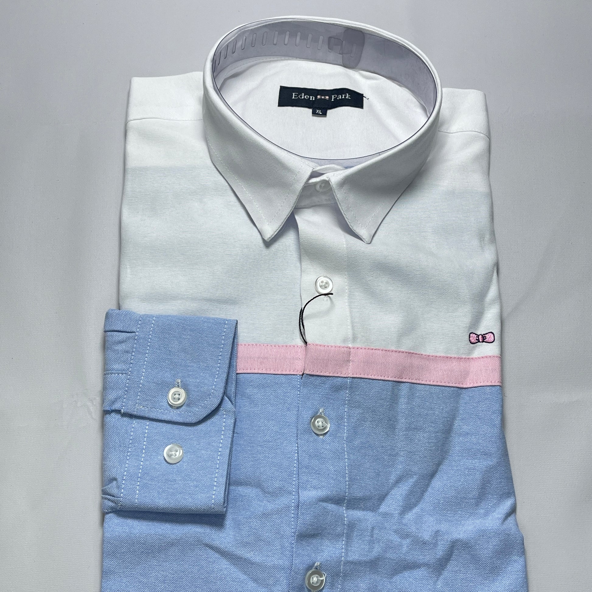 Eden Park Dual-Tone White and Blue Oxford Long Sleeve