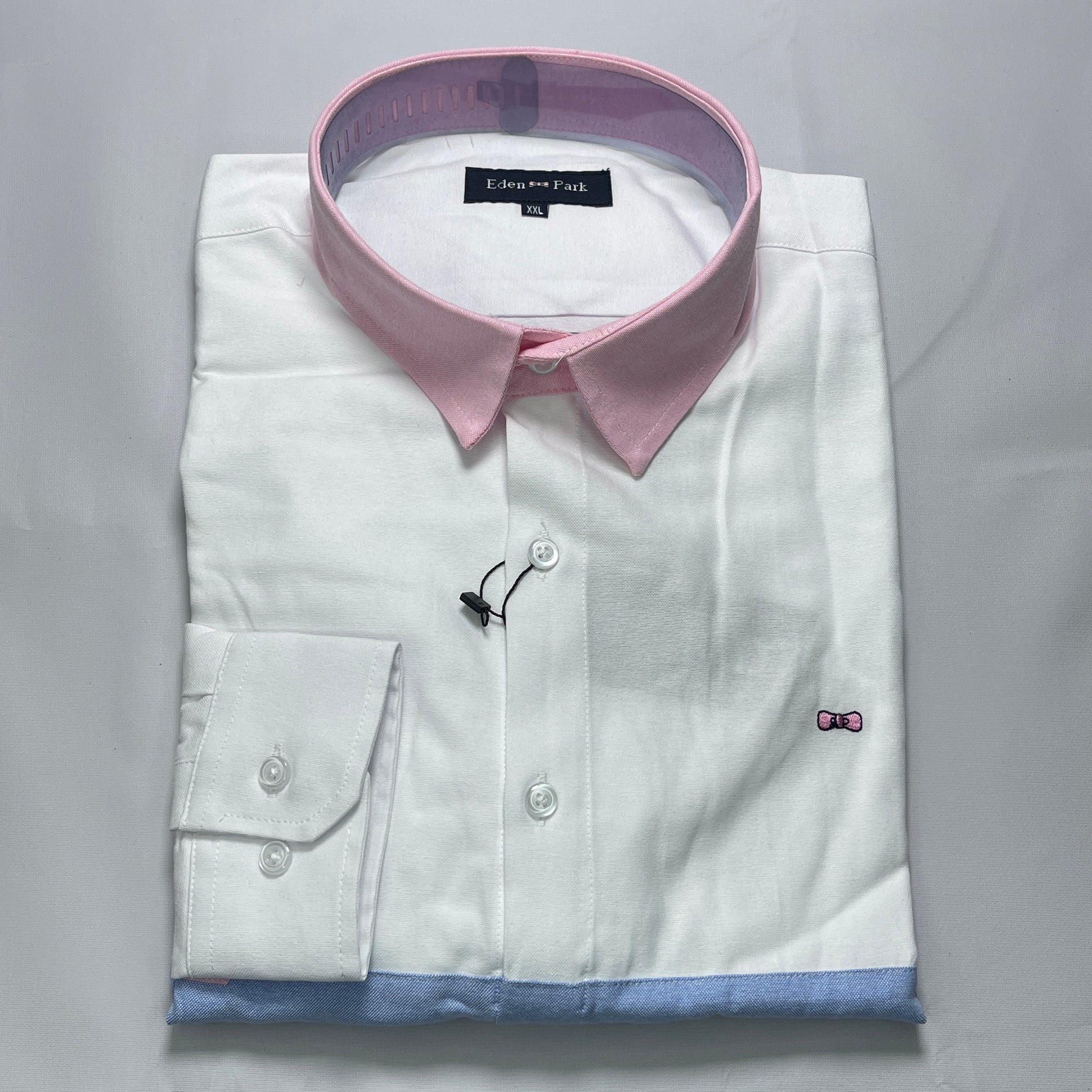 Its clean white shirt is elevated by gentle touches of pink and blue detailing, adding a discreet layer of depth and distinction without disrupting its classic appeal. Finished with the iconic embroidered bow tie logo, this shirt embodies effortless refinement.