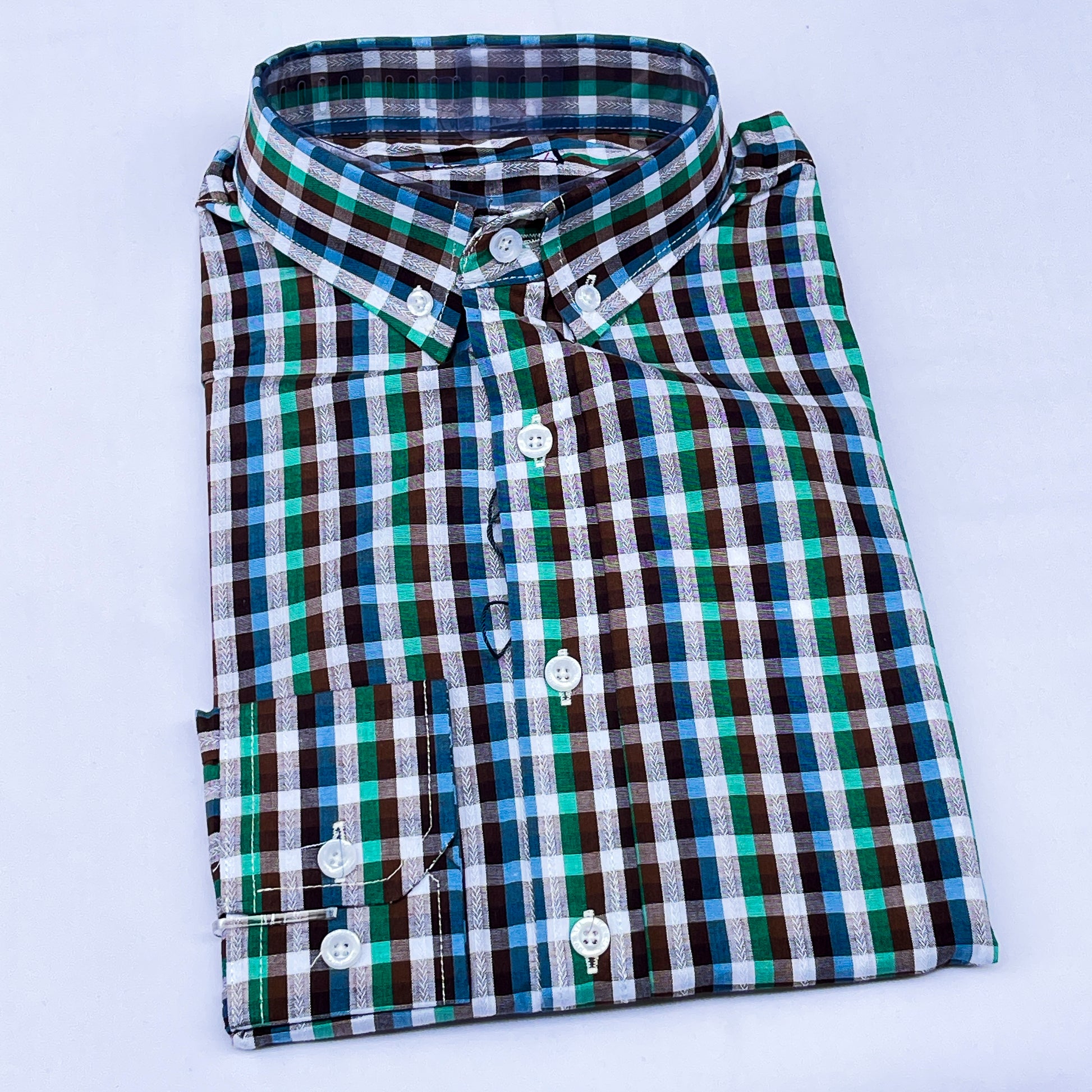 Men’s Custom Fit Blue Checked Shirt - G007