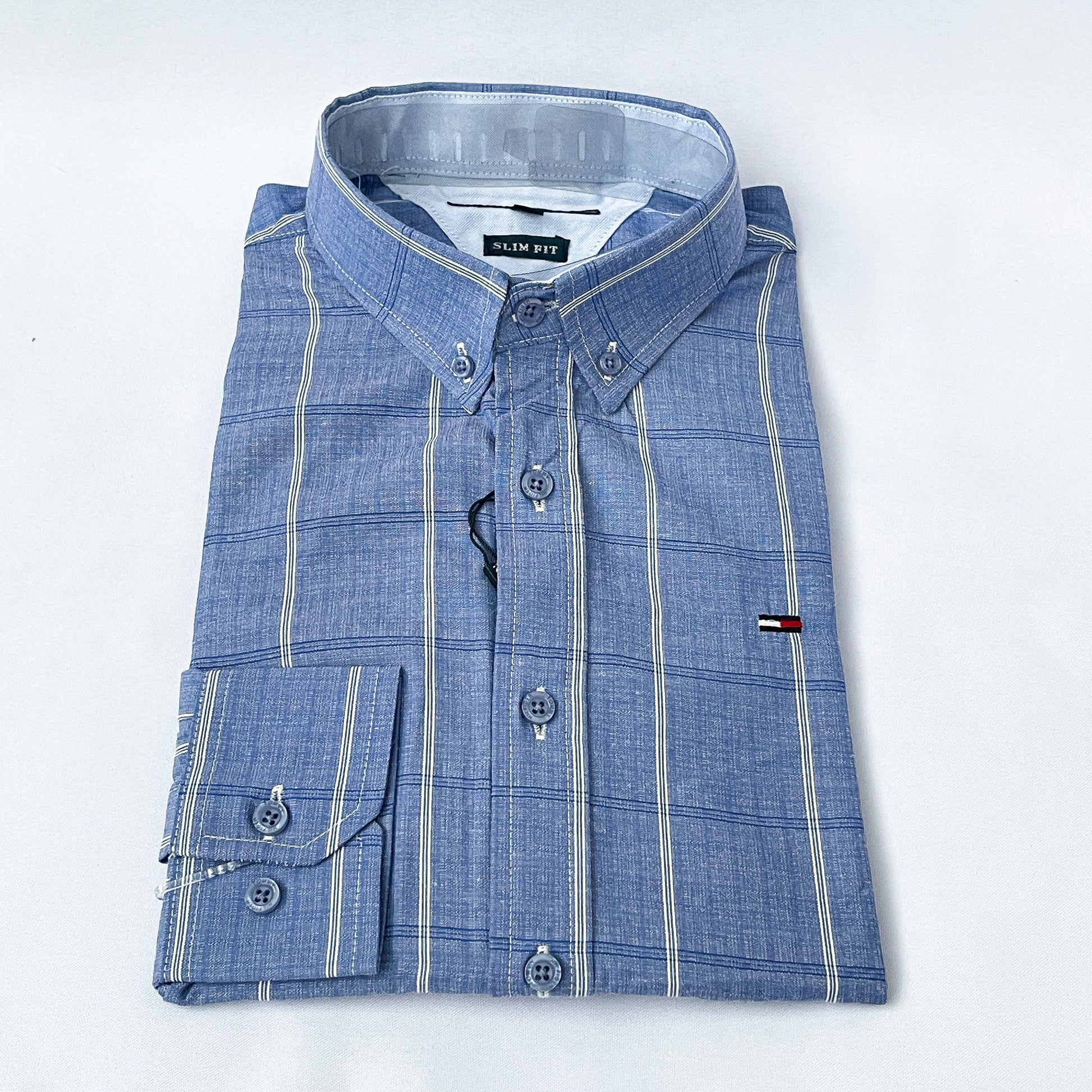 Men's Custom Slim Fit Oxford Blue Striped Long Sleeves -THL 257